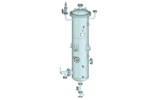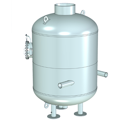 Сепаратор (расширитель) непрерывной продувки представляет собой вертикальный цилиндрический сосуд эллиптическими днищами, подводящим патрубком и паро- и водоотводящими патрубками и поплавковым регулятором, который автоматически поддерживает уровень воды. Закрутка потока осуществляется за счет организованного подвода пароводяной смеси на внутреннюю стенку сепаратора или за счет установки специальных внутренних устройств.